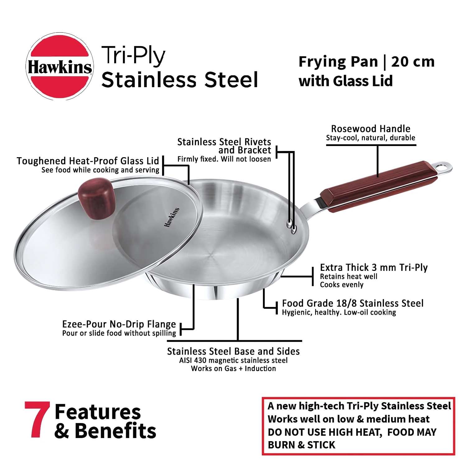 Hawkins 20cm Tri Ply Stainless Steel Frying Pan with [...]